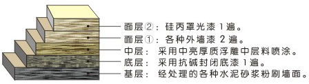 特殊改性丙烯酸復(fù)層涂料,有優(yōu)異的封固抗堿能力,用浮雕專用噴槍噴涂經(jīng)特殊處理,能等他出立體感強(qiáng)、各種造型的浮雕效果,是建筑內(nèi)外墻,尤其是外墻的理想裝飾材料。