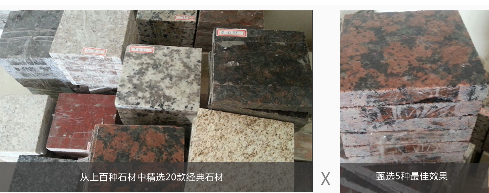 公認(rèn)的20款經(jīng)典石材,卡拉麥里金、英國棕、黃金麻、黃銹石、白麻等。再從每款石材中甄選5種效果,