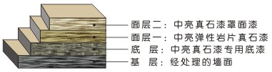 選用無皂聚合純丙烯酸硅樹脂乳液、天然彩石和特種巖片精制而成,能夠逼真展現花崗巖紋理的真石漆。彈性巖片仿石漆中必不可少的復合巖片,為特殊創(chuàng)新技術制造,是1-12mm大小不先進厚度為0.3mm的柔軟而具有彈性的不規(guī)則片狀組合體,每種復合巖片的色彩都有天然無機元素構成,永不褪色,物理形狀還是色彩都是依據天然的花崗巖中顆粒形態(tài)、顏色而制造復合巖片由高分子聚合物合成,因此具有超強耐水、耐候性,能與各類水性真石漆緊密結合。