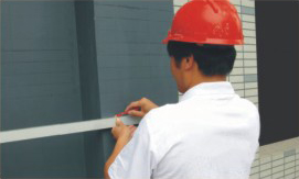 第四步:彈出分格線 線條漆干燥后,用墨線彈出根據(jù)客戶要求的面磚尺寸大小所確定的分格線。