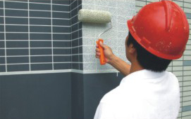 第一步:平整基層墻體 在外墻保溫做好后,貼好網(wǎng)格布,在做好抗裂砂漿的墻面上批刮優(yōu)質(zhì)外墻膩?zhàn)?-2遍,直至平整,膩?zhàn)咏ㄗh使用中亮仿面磚涂料專用配套膩?zhàn)印?/p> 第二步:滾涂抗堿底漆 膩?zhàn)痈稍锖?,用砂皮打磨掉毛面和批刀痕跡,用清水保養(yǎng)一遍膩?zhàn)?,待干燥后抗堿滲透性底漆均勻滾涂一遍。 第三步:滾涂線條漆 底漆干燥后,滾涂用戶選擇的中亮線條漆一遍。