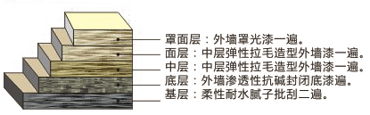 優(yōu)特性說明:★ 采用專用拉毛滾筒使涂料造型細(xì)、中、粗,不同桔皮紋美感,使涂料造型質(zhì)感美觀具有立體感。 ★ 具有高彈性功能,可覆蓋出現(xiàn)嚴(yán)重裂縫的新舊墻面,有效防止墻面開裂所產(chǎn)生的裂縫,光感好。 ★ 優(yōu)異的耐老化、抗風(fēng)化、耐久牢固抗碳化功能。 ★ 具有抗雨水、汽化、防堿、防霉、防藻性能。 ★ 超強(qiáng)耐擦洗。 產(chǎn)品特征:水性、半光、高彈性、彩色、單組份。 建議配套用漆: